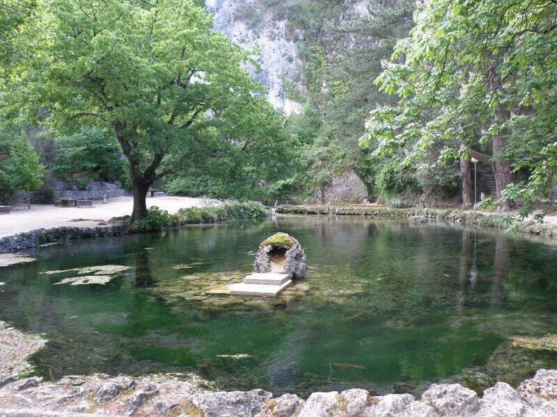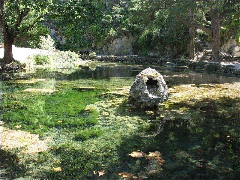 La Source du Groseau se trouve à quelques pas du centre de Malaucène, au pied du Mont Ventoux. C’est une source vauclusienne qui surgit naturellement de la roche calcaire, formant un petit bassin clair et frais dans un cadre verdoyant.
