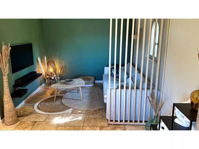 Elle dispose de deux espaces de vie séparés, dont l'un est équipé d'une smart TV.