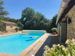 Ce mas provençal en pierre des années 1960, situé sur une ancienne oliveraie, a été entièrement restauré en 2019. La maison a une superficie totale de 250m² et offre une vie de plain-pied, à l'exception de deux marches. Près de la piscine se trouvent deux studios séparés, offrant une intimité et une flexibilité supplémentaires.