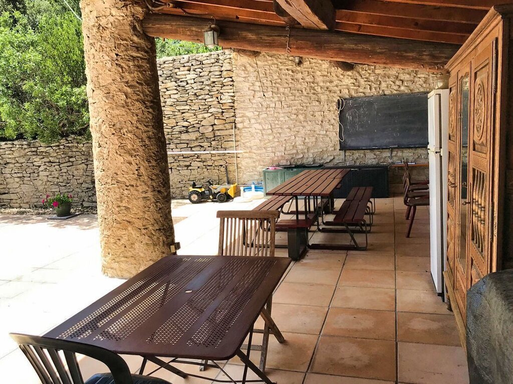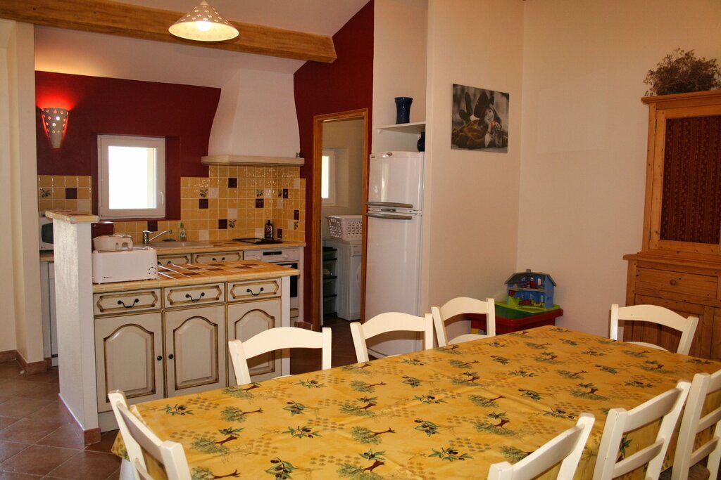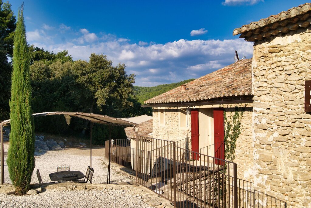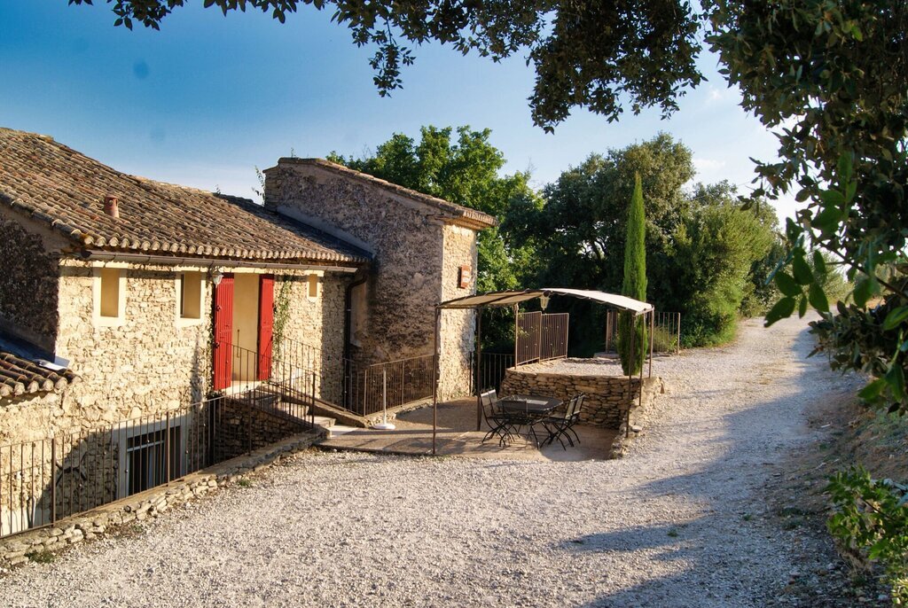 Ce gîte fait partie d'un grand mas provençal. Le domaine abrite un deuxième gîte, qui est loué chaque année à un homme seul. Les propriétaires habitent de l'autre côté du domaine.