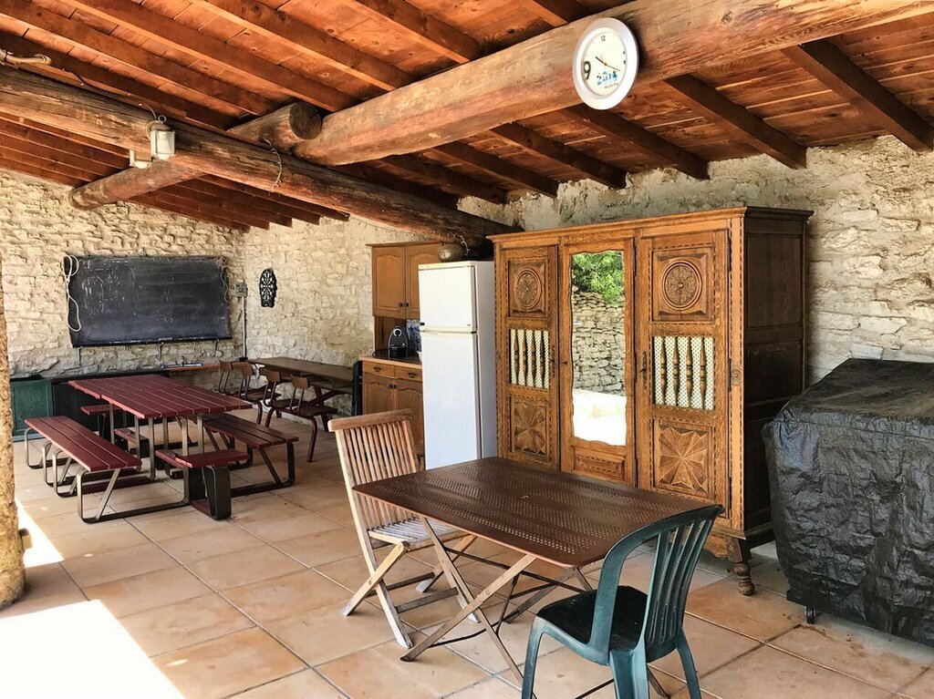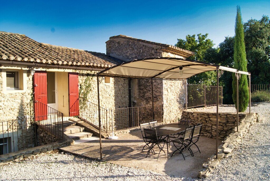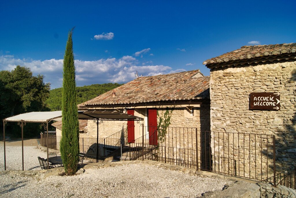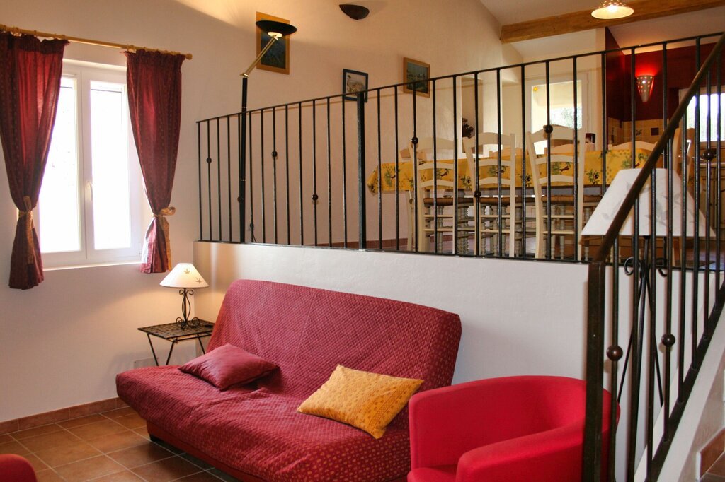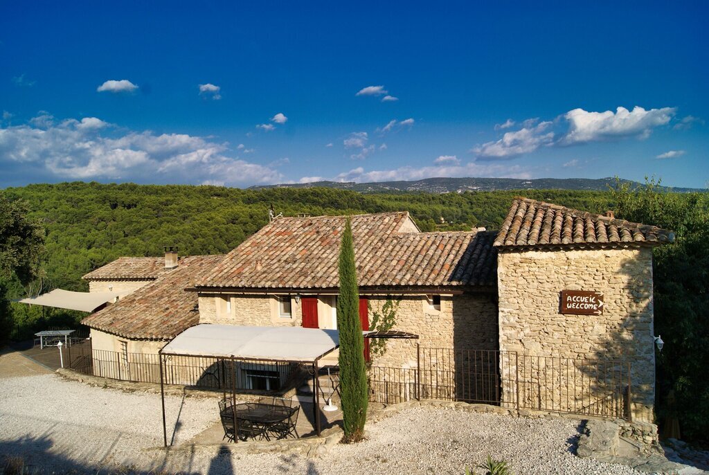 Ce gîte fait partie d'un grand mas provençal. Le domaine abrite un deuxième gîte, qui est loué chaque année à un homme seul. Les propriétaires habitent de l'autre côté du domaine.