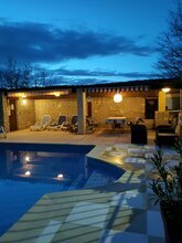 Une maison de vacances sympa avec une grande piscine et une cuisine extérieure. Comme il faisait très chaud, nous n'avons pas pu utiliser le barbecue extérieur en raison du risque d'incendie.