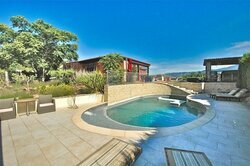 Cette villa est située en bordure du centre à quelques pas (700 m) de tous les commerces : épicerie, boulangerie, terrasses, restaurants ...