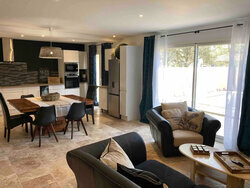 Grâce à la climatisation, la température reste agréable même pendant les chaudes journées d'été. Vous pourrez profiter de l'extérieur dans le salon de jardin, où vous pourrez vous détendre et profiter de la tranquillité des lieux.
