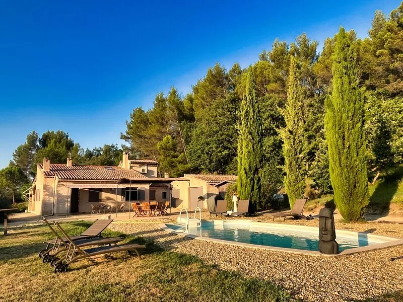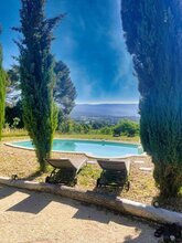 La véranda offre un salon de jardin élégant. Il y a également une deuxième terrasse près de la piscine, couverte d'une charmante pergola au toit de chaume, parfaite pour les moments ombragés.