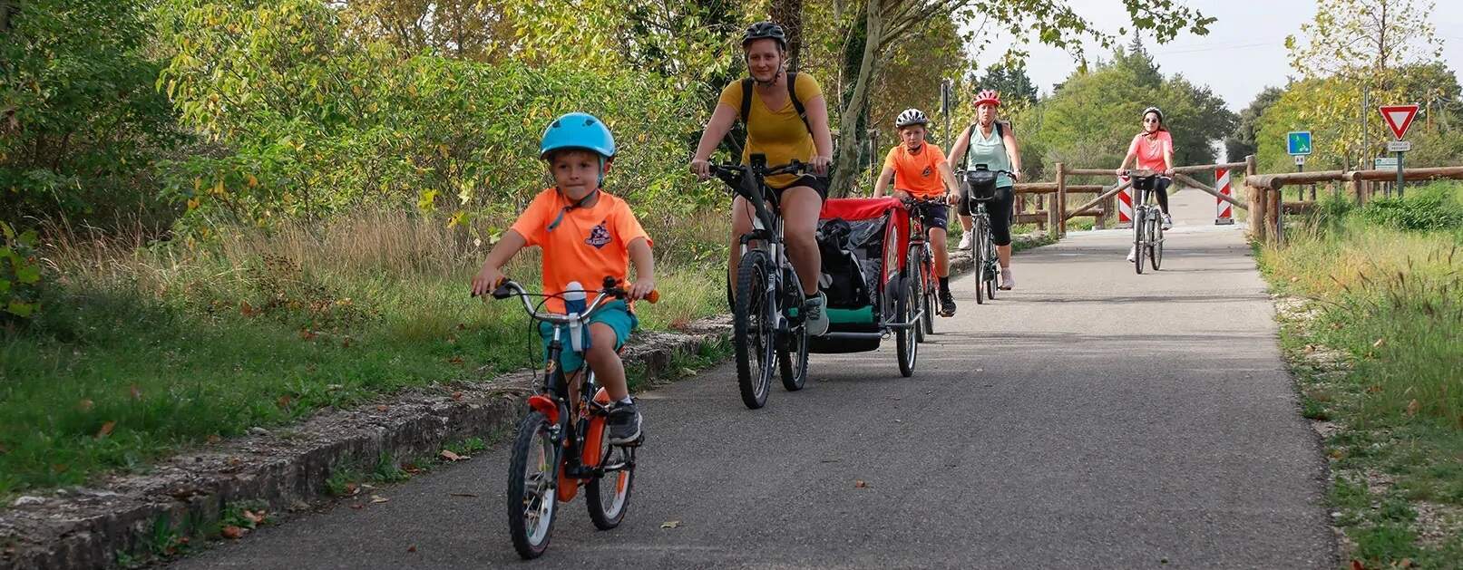 Het deel tussen Jonquières en Carpentras (ca. 15 km) is volledig autovrij en zeer geschikt voor jonge fietsers. De rest van de route tot Velleron verloopt deels over rustige wegen en deels over verharde paden.