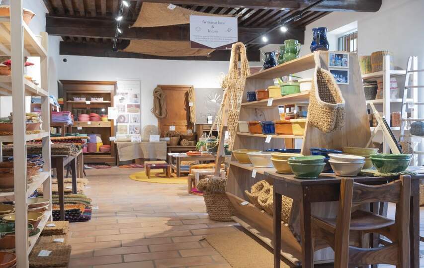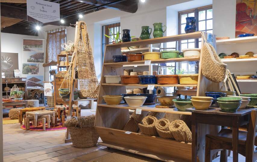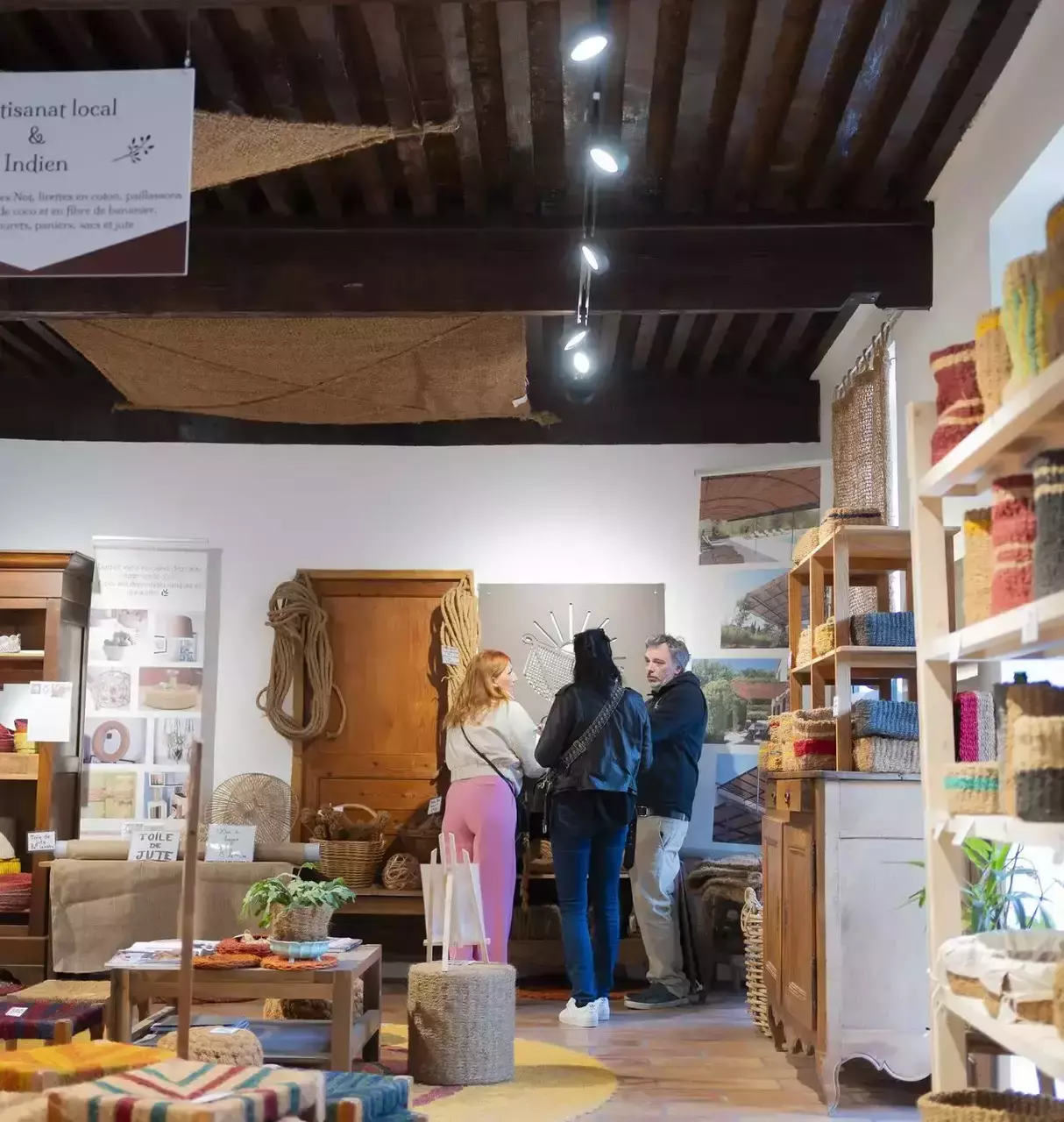 Bij je bezoek ontdek je een charmant atelier waar nog met originele machines wordt geweven. Je wandelt door het museum en ziet meewerken aan traditionele looms. In de winkel vind je lokale producten, handwerk uit India en de bijzondere Ombrières: schaduwdoeken van natuurlijke vezels, ontworpen door Scourtinerie zelf.