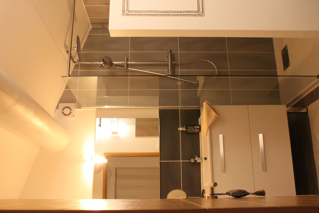 Badkamer 3 met Italiaanse douche, lavabo en toilet.
