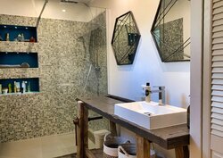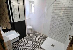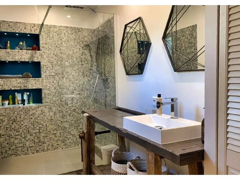 Eigen badkamer 1 met Italiaanse douche, lavabo, toilet