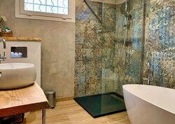 Badkamer 2 met douche, ligbad, lavabo, toilet
