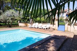 Het riante, omheinde zwembad heeft een hellende bodem. Dit vakantieverblijf is bij uitstek geschikt voor gezinnen met jonge kinderen, dankzij de beveiligde omgeving van het zwembad en het ondiepe gedeelte.