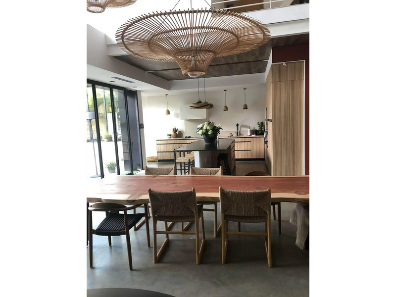 Een imposante plataan, majestueus geplaatst in de tuin, biedt volledige privacy voor het interieur van de woning en omhult 60% van de tuin met zijn groene bladerdak. Voor degenen die zich willen uitleven in de kunst van het buiten koken, staan een houtskoolgrill en een draagbare plancha op gas ter beschikking. Bovendien is er een overvloed aan comfortabel tuinmeubilair om in te genieten.
