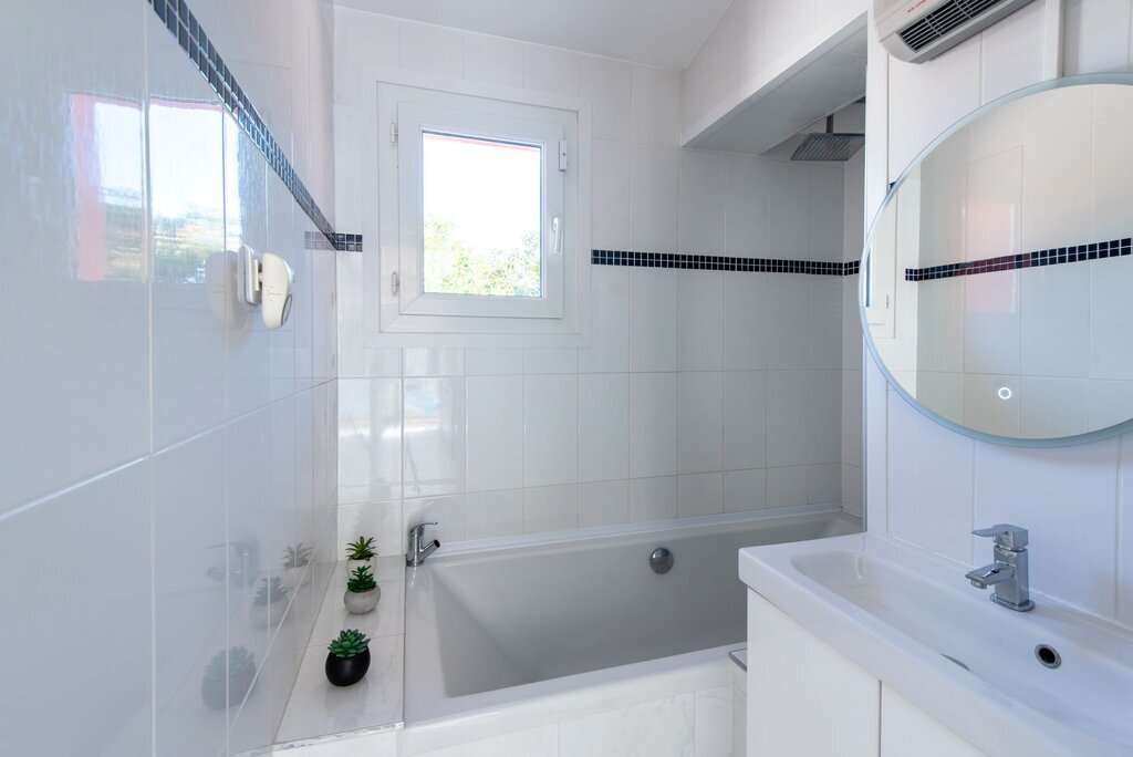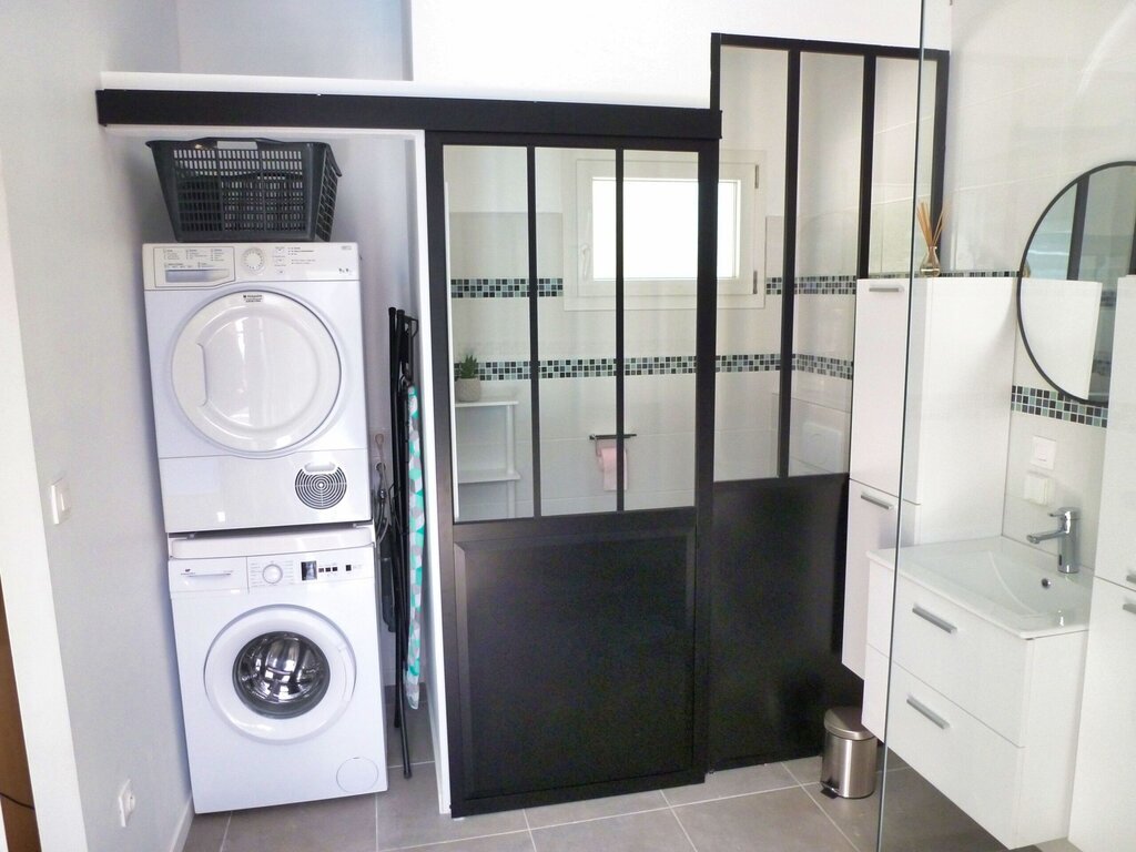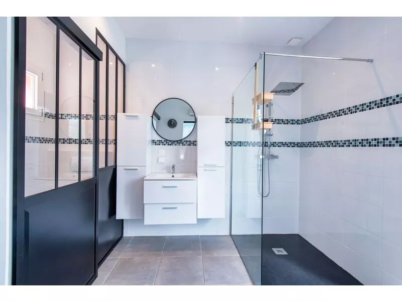 De tuin van 500 m² is volledig omheind en biedt tal van aangename zithoekjes, zowel in de zon als in de schaduw.