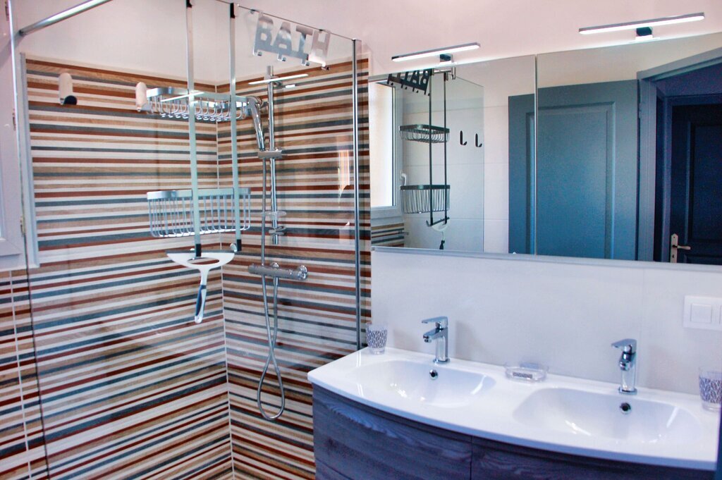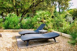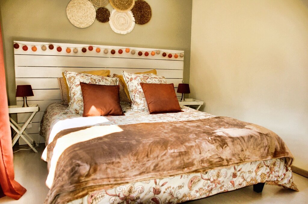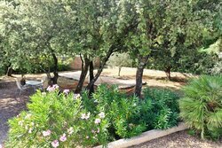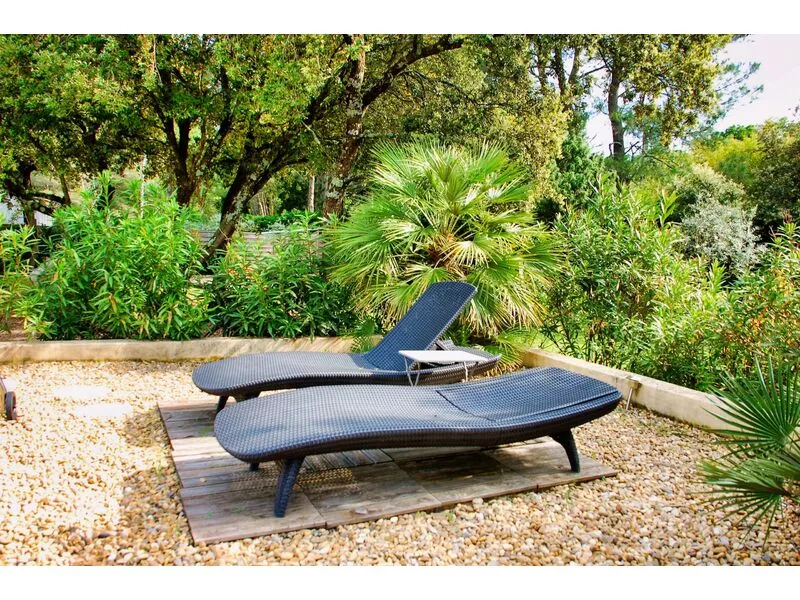 Het is niet mogelijk om je daar te vervelen: aangenaam zwembad, de petanquebaan, de hangmatten en de ligzetels om lekker lui een boek te lezen… De tuin is eigenlijk een domein met voldoende schaduwplaatsjes (was nodig!) en privacy, je kan er ook badmintonnen en voetballen, de auto’s kunnen de hele dag in de schaduw staan.