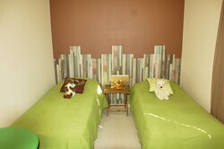 Het enige nadeel dat wij hebben ondervonden is dat het bed in de grote slaapkamer vrij klein is!