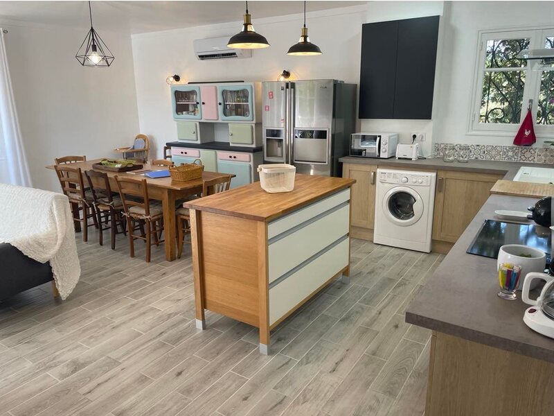 Met het oog op families is dit vakantiehuis zeer kindvriendelijk ingericht. U kunt genieten van een groot overdekt terras dat een prachtig zicht biedt op het zwembad, waardoor u ontspannen kunt toekijken terwijl de kinderen veilig spelen. De keuken is uitgerust met een Amerikaanse ijskast, ideaal voor het bereiden van verfrissende drankjes en het bewaren van al uw vakantieproviand.