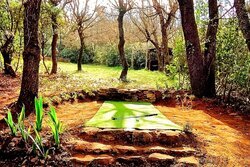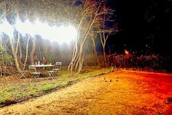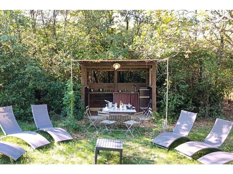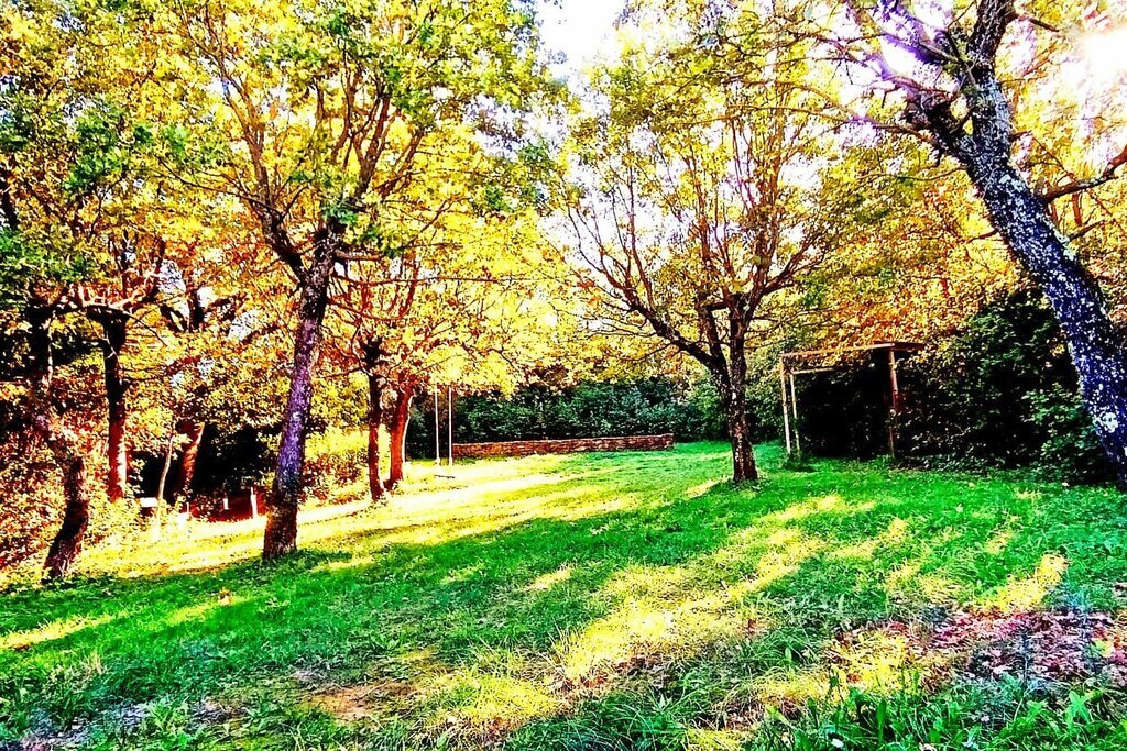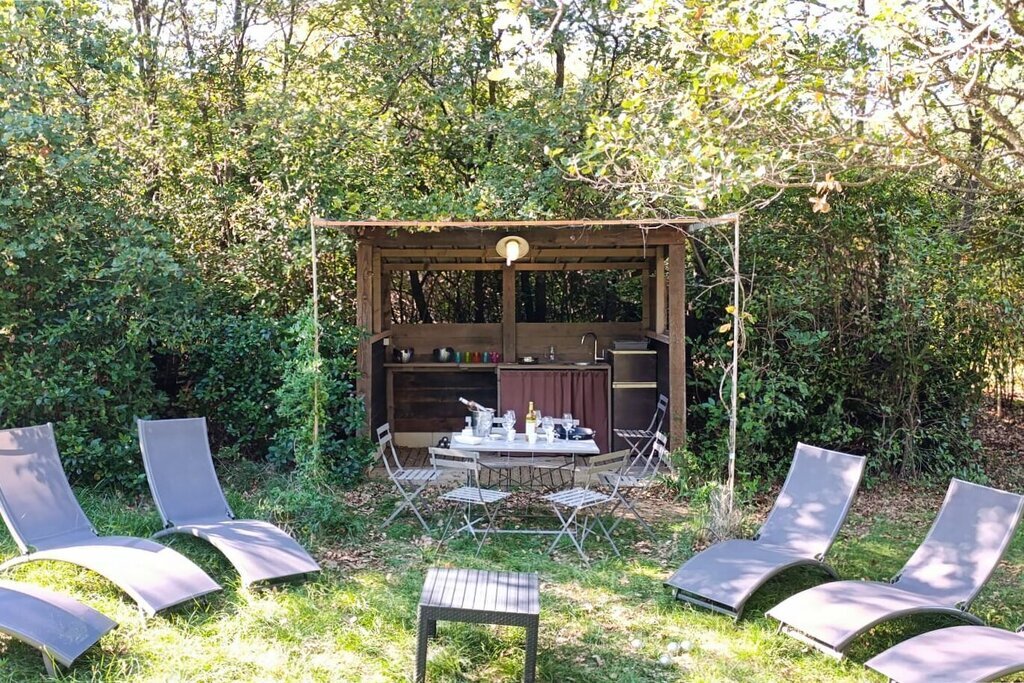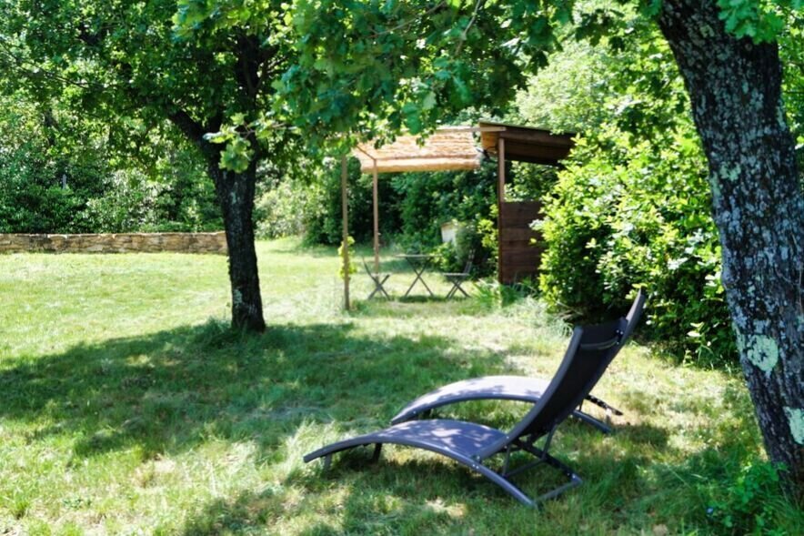 Hoge, deels eeuwenoude bomen zorgen voor aangename schaduw, en verspreid over het domein vindt u meerdere gezellige zitplaatsen, zowel in de zon als in de lommerte.