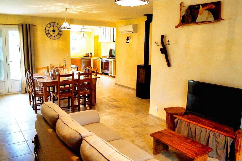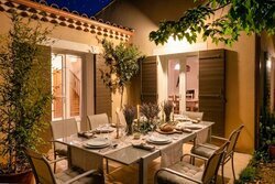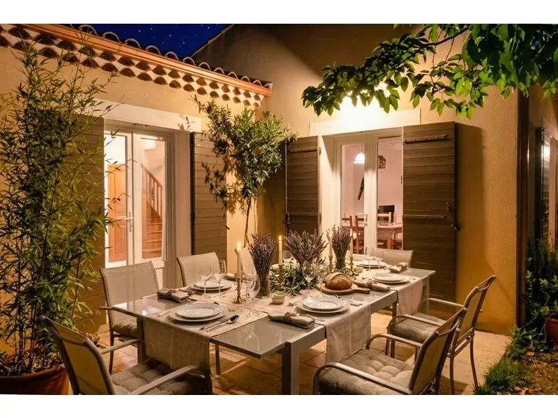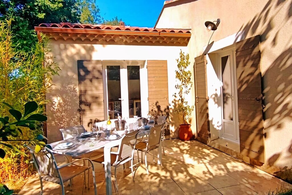 Aansluitend aan de villa bevindt zich een terras met natuurlijke schaduw dankzij een dakmoerbei.