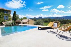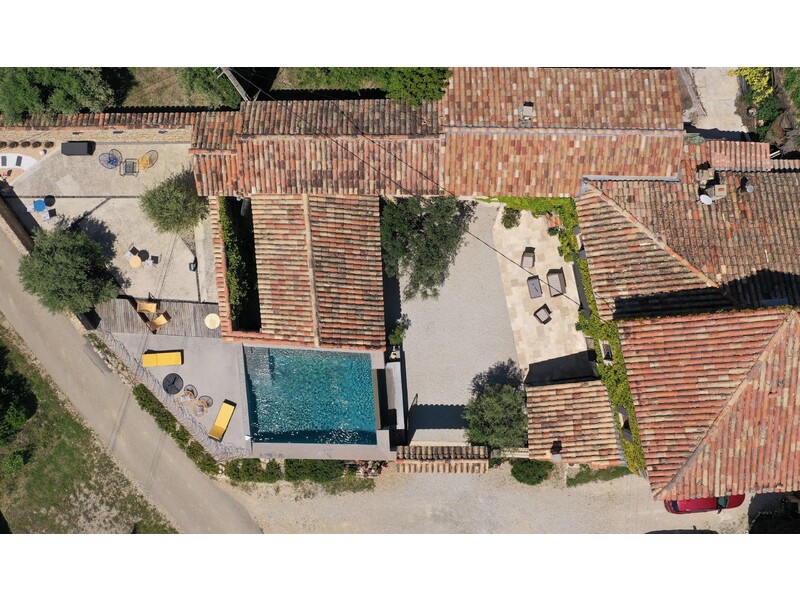 Het zwembad, ontworpen met een geïntegreerde zitbank over de gehele lengte, is een luxueus overloopzwembad voorzien van een indrukwekkende waterval van drie meter die sierlijk in de binnenplaats terechtkomt. Vanuit het zwembad genieten gasten van een adembenemend uitzicht op de uitgestrekte wijnvelden en de majestueuze Dentelles de Montmirail.
