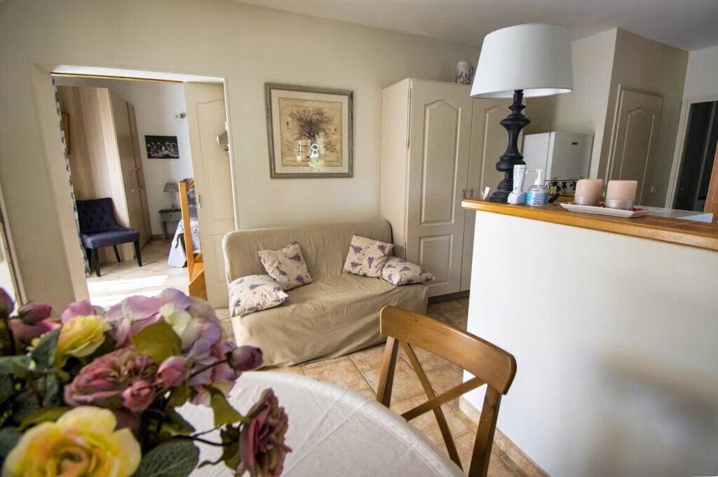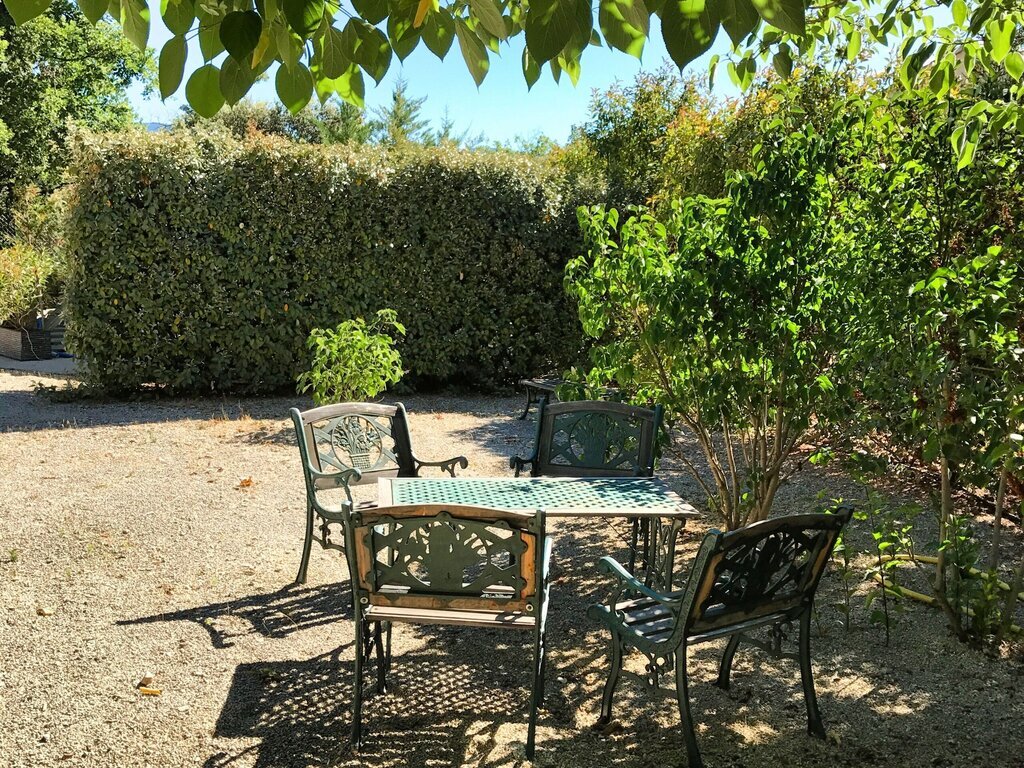 Verspreid over de tuin vindt u verschillende aangename zitplaatsen, zowel in de zon als in de schaduw van de olijfbomen.